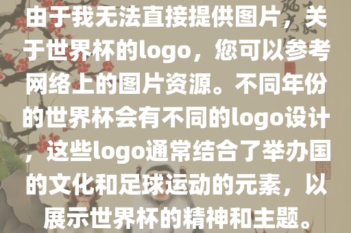 由于我无法直接提供图片,关于世界杯的logo,您可以参考网络上的图片资源。不同年份的世界杯会有不同的logo设计,这些logo通常结合了举办国的文化和足球运动的元素,以展示世界杯的精神和主题。