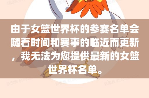 由于女篮世界杯的参赛名单会随着时间和赛事的临近而更新,我无法为您提供最新的女篮世界杯名单。