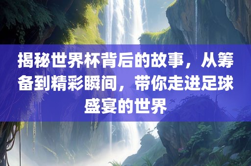 揭秘世界杯背后的故事,从筹备到精彩瞬间,带你走进足球盛宴的世界