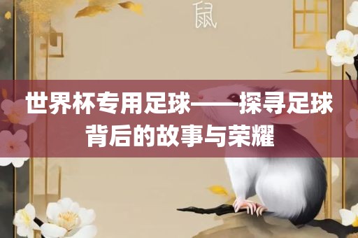 摘要:,,世界杯专用足球承载着无数故事与荣耀。这款足球不仅代表了顶级的体育赛事,更体现了足球文化与精神的传承。通过探寻足球背后的设计、制造、历史与传奇,我们得以感受足球运动的力量与魅力。每一颗足球都见证了世界杯赛场上的精彩瞬间,承载着球迷们的激情与梦想。