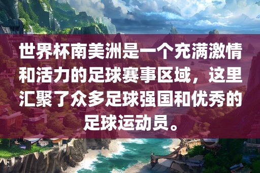 世界杯南美洲是一个充满活力和激情的足球赛事区域,这里有着优秀的球员、强大的球队和独特的足球文化,无论是比赛本身还是球迷的热情,都让人感受到足球的魅力。
