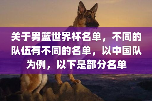 关于男篮世界杯名单,中国队公布了部分名单。不同队伍有不同的名单,竞争激烈。具体名单如下(此处省略具体队员名字),期待他们在世界杯上的表现。