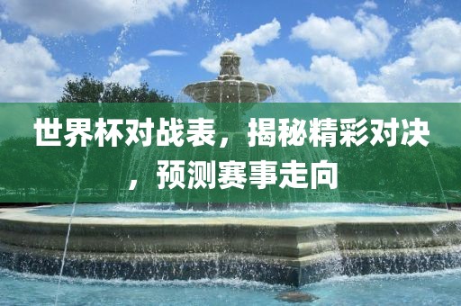 摘要:本文揭示了世界杯的精彩对战表,为您呈现一系列令人期待的对决。通过深入研究各支球队的实力、战术和球员状态,我们预测了赛事的走向。无论您是足球迷还是热爱体育的观众,都能在这篇文章中找到您感兴趣的赛事和预测结果。让我们一起期待这场足球盛宴的每一个精彩瞬间!