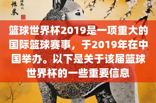 篮球世界杯2019是一项重大的国际篮球赛事,于2019年在中国举办。以下是关于该届篮球世界杯的一些重要信息