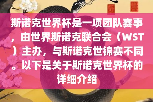 斯诺克世界杯是一项团队赛事,由世界斯诺克联合会(WST)主办,与斯诺克世锦赛不同。以下是关于斯诺克世界杯的详细介绍