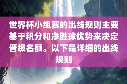 世界杯小组赛的出线规则主要基于积分和净胜球优势来决定晋级名额。以下是详细的出线规则