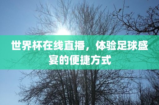 世界杯在线直播不仅让我们轻松观看世界杯比赛,还为球迷们提供了丰富的互动体验,让我们一起期待这一盛事的到来,共同感受足球的魅力,分享这一全球狂欢的节日!在此,祝愿各位球迷朋友在观看世界杯比赛的同时,也能享受到美好的生活。